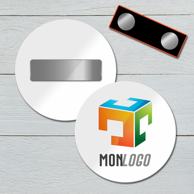 Badge aimanté personnalisé en couleur, avec attache magnétique !