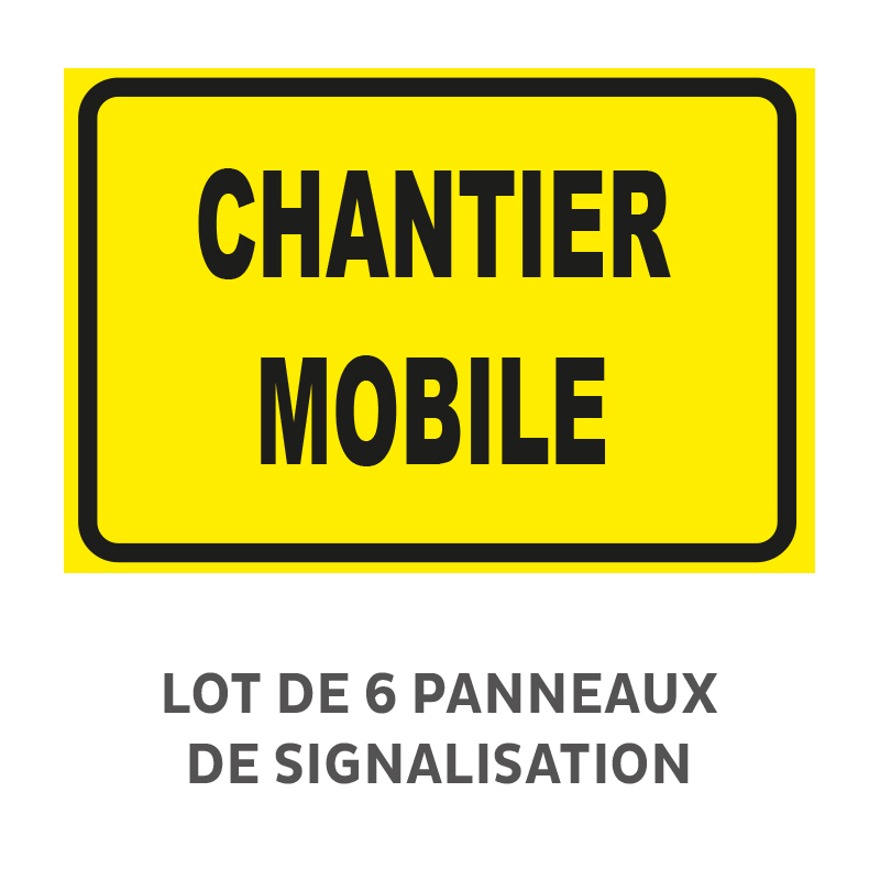Lot de 6 Panneaux "chantier mobile" Akilux Recto, en PVC alvéolaire 3,5 mm 650 gr/m² qui assure une excellente rigidité en gardant de la souplesse pour s'accorder à de légers arrondis (affichage sur barrière, courbes, clôtures, poteaux, ...).