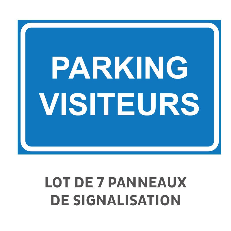 Lot de 7 Panneaux "parking visiteurs" Akilux Recto, en PVC alvéolaire 3,5 mm 650 gr/m² qui assure une excellente rigidité en gardant de la souplesse pour s'accorder à de légers arrondis (affichage sur barrière, courbes, clôtures, poteaux, ...).