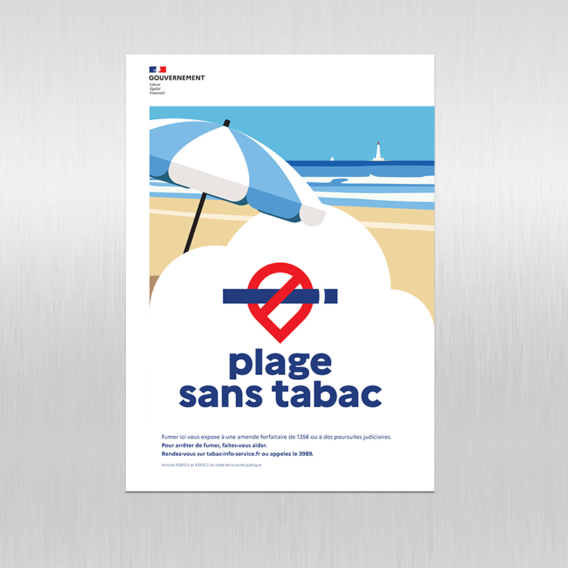 autocollant sticker adhésif Officiel Plage sans tabac [Loi sans Tabac gouvernement juillet 2025]