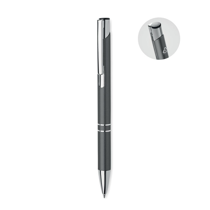 Le stylo à bille en aluminium recyclé BERN RA est l'outil d'écriture idéal pour vos stratégies de goodies promotionnels. Conçu avec une matière durable, il offre un design élégant et respectueux de l'environnement, tout en garantissant une excellente prise en main grâce à ses dimensions de Ø1X13,7 cm.Profitez d'un environnement professionnel et durable avec ce stylo à bille à bouton poussoir. Disponible en encre bleue, il assure une écriture fluide et précise, parfait pour les bureaux soucieux de leur empreinte écologique.Le stylo BERN RA se distingue par l'utilisation d''aluminium recyclé', valorisant ainsi votre engagement envers le développement durable et affirmant votre image de marque. C'est le choix parfait pour des cadeaux d'entreprise originaux et écoresponsables, qui se démarqueront lors de vos événements professionnels.En personnalisant ce stylo avec votre logo, vous bénéficiez d'un accompagnement expert tout au long du processus. Notre équipe de spécialistes en marquage travaille à vos côtés pour choisir la technique la plus adaptée à votre charte graphique, assurant ainsi une visibilité optimale de votre entreprise.Les délais de livraison varient en fonction des quantités commandées : comptez 4 jours ouvrables pour des produits sans marquage, et entre 8 à 12 jours pour des produits personnalisés. Nous offrons également une option de production express sur demande, afin de répondre à vos besoins urgents.Ne ratez pas l'occasion de mettre en avant votre engagement écologique avec le stylo BERN RA. Demandez dès maintenant votre devis rapide et personnalisé pour découvrir comment ce produit peut s'intégrer dans votre stratégie de communication responsable.