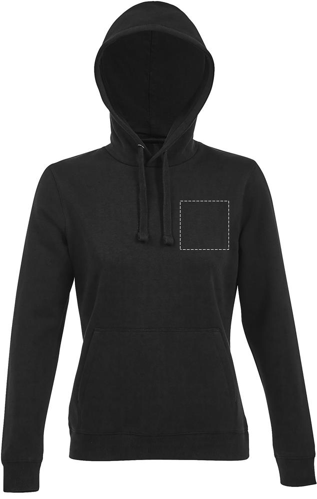 Le sweat-shirt SPENCER WOMEN représente l'alliance parfaite entre confort et style, idéal pour vos besoins en textile publicitaire. Fabriqué à 80% en coton Ringspun et 20% en polyester, il offre une douceur remarquable grâce à un intérieur gratté et un extérieur 100% coton molleton 280. Profitez de la technologie LSF (low shrinkage fabric), qui garantit une tenue parfaite dans le temps, même après plusieurs lavages.Ce sweat-shirt femme à capuche est un excellent choix pour les vêtements d'entreprise, les événements et les objets promotionnels. Il est équipé d'une poche kangourou pratique, d'une capuche doublée avec cordon de serrage, et de poignets et bas en bord côte 2x2 pour un ajustement optimal. Disponible en plusieurs coloris chinés tels que l'anthracite, le gris, l'oxblood et le denim, chaque modèle offre une composition unique pour convenir à toutes vos exigences.Personnalisez votre SPENCER WOMEN avec notre impression sur textile personnalisée. Notre équipe experte vous accompagne du choix du produit à la création de la maquette, assurant un marquage qui maximise l'impact de votre logo. Du prêt-à-porter au textile promotionnel, bénéficiez d'un suivi personnalisé tout au long de votre projet.N'attendez plus pour offrir à vos clientes un produit de qualité qui saura rehausser votre image de marque. Demandez dès maintenant votre devis rapide et personnalisé.Les délais peuvent varier en fonction des quantités demandées : comptez environ 4 jours ouvrables pour des produits non marqués, et entre 8 et 12 jours pour des produits personnalisés. Une production en express est également envisageable sur demande pour répondre à vos urgences.